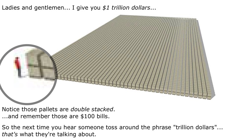 In figures, thats $2,000,000,000,000. A number so large it is difficult for the mind to fully understand. So here is a visualization of sorts: