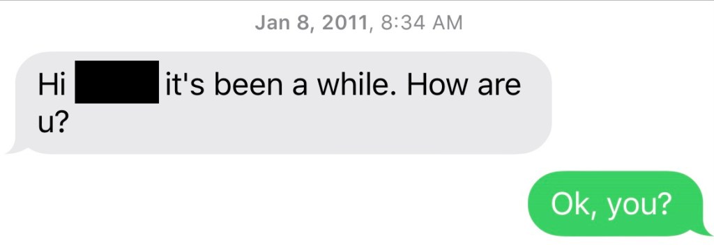 I had decided that I wouldn’t ruin this day with a pall of sadness, I would break the news after the weekend. We would just enjoy this day out and one more weekend. Shortly before leaving the house, I got a text from an old friend that I hadn’t heard from in months, who had no idea what was going on with my dad. The text simply asked how I was doing. I lied with a quick “ok, you?” And thought nothing more of it. My friend didn’t text back right away. Never has been one to reply quickly.