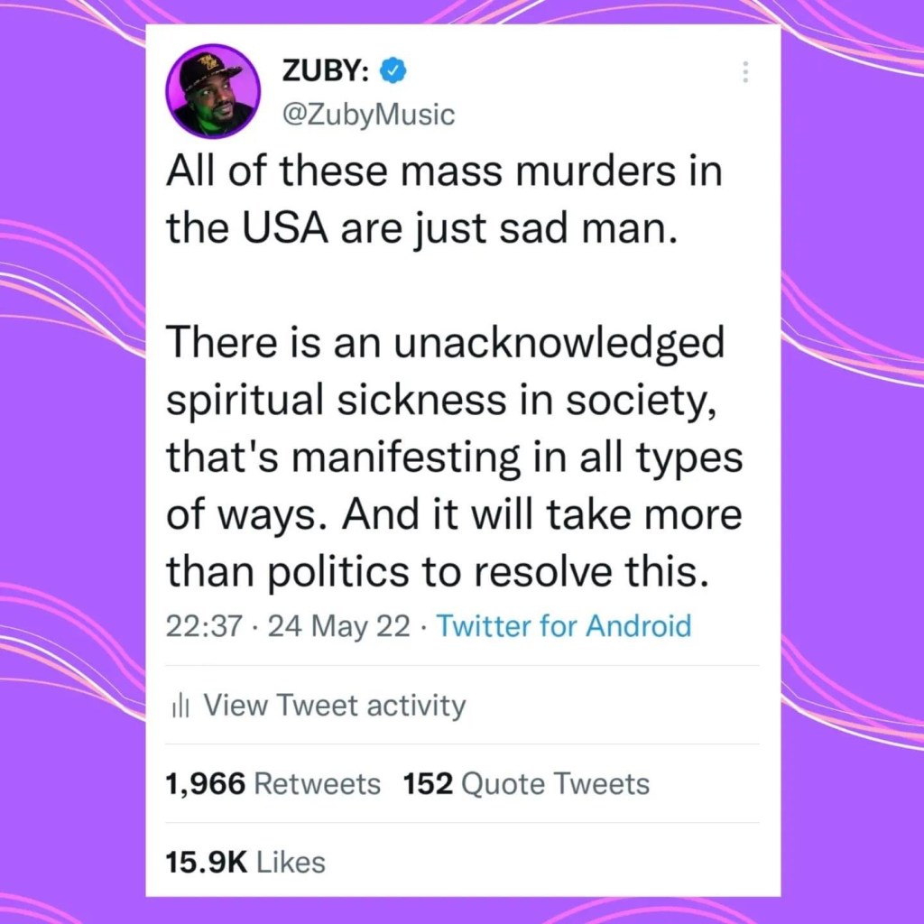 What I do know is that arguing against the instrument of evil won’t fix the problem of evil. I believe these issues are foundational to the root problem but I know they’re not popular to work on because they require true and deep internal changes in our society. They force everyone to make critical changes and accept area of personal responsibility. They’re more akin to a root canal than a mere veneer offered by politicians.