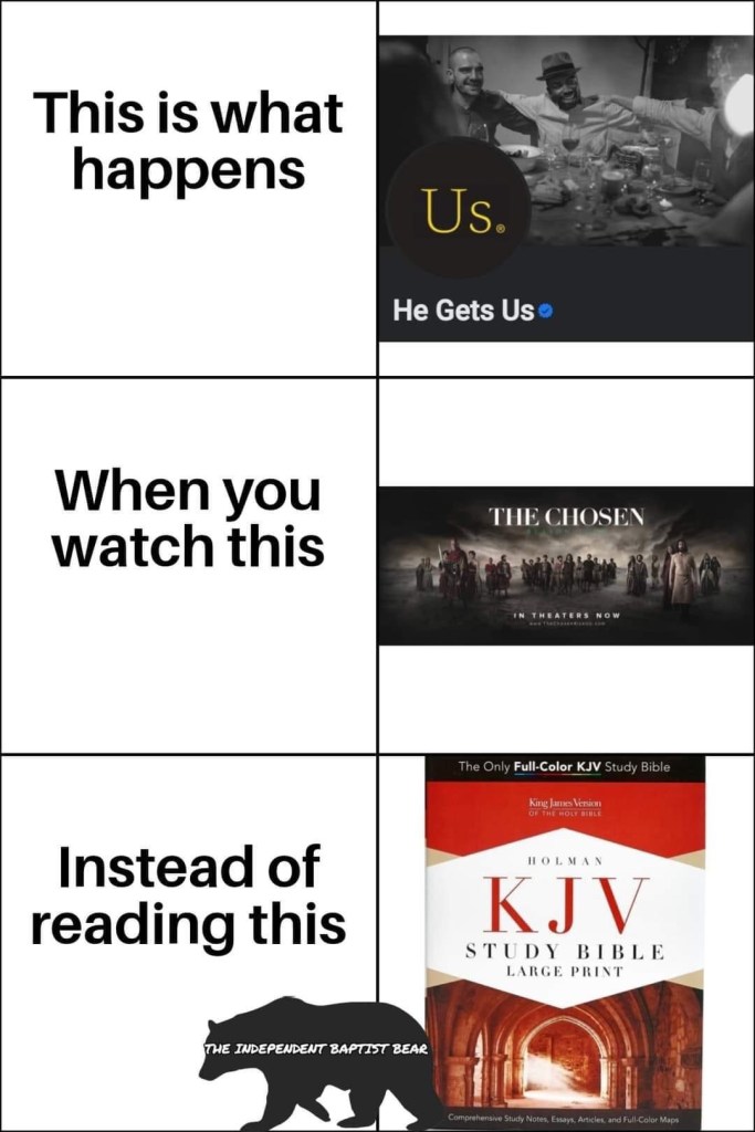 The backlash to this movement, while warranted internally among believers to do more, mirrors the backlash against “The Chosen.” Both campaigns are not meant to replace the Bible or the work of the Church. I for one think the Chosen is a wonderful image of the apostles – in spite of its perfections. They are meant to inspire interest, reach the lost where they are even if in a very small and subtle way. In a world filled with entertainment that is quite frankly demonic, “The Chosen” stands out as something that Christians can rally around not as a replacement for the Word but as a way to reach others through a medium that is largely worldly and void of the Gospel. “He Gets Us” does the same in the form of an ad.